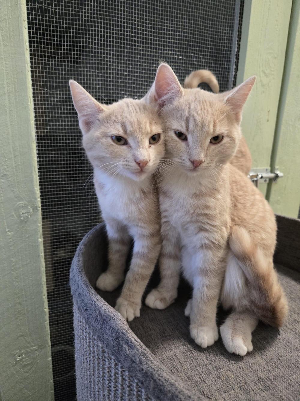 Reea on arviolta syyskuussa 2022 syntynyt leikattu naaraskissa ja Dr. Pepper on arviolta toukokuussa 2020 syntynyt leikattu uroskissa. Reean toinen takajalka on tynkä, ei ole tiedossa mitä jalalle on tapahtunut. Pärjää jalan kanssa kuitenkin hyvin, se ei vauhtia ja kiipeilyä hidastele.